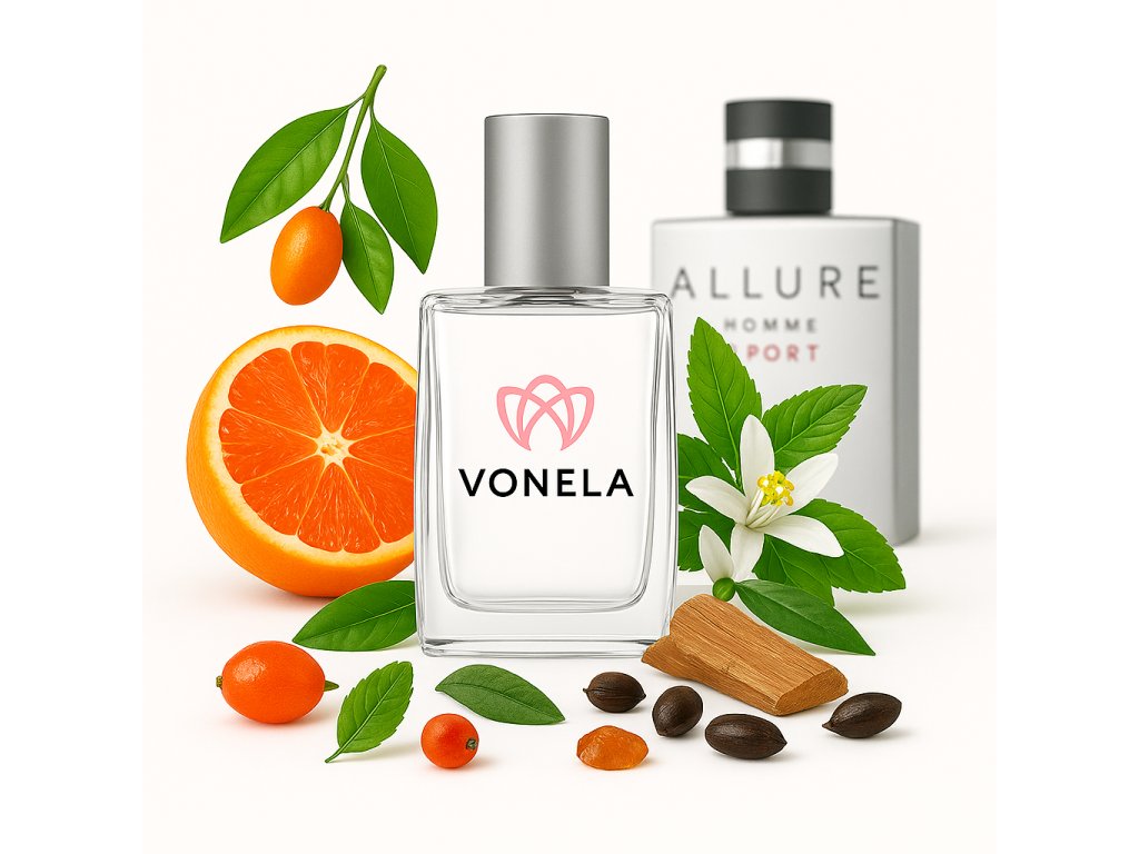 Chanel přichází s vůní pro přitažlivého a sportovně založeného muže, z něhož vyzařuje energie, harmonie a má smysl pro fair play. Allure Homme Sport je svěží a smyslná kompozice mandarinky s pomerančem, vetiverem a nerolem. Celkový charakter vůně je dřevitý a s jemně kořenitým podtónem černého madagaskarského pepře navozuje představu slunce, prostoru a větru, cuchajícího vlasy.