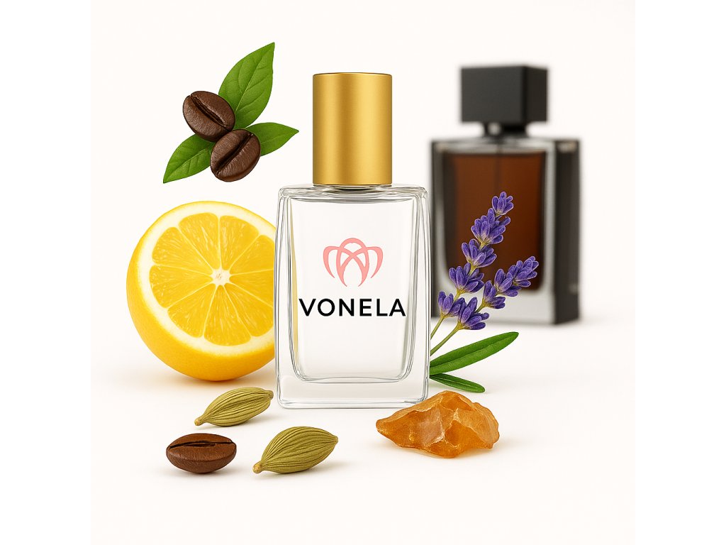 Začátek velmi svérázné hostiny pro mužské nosy, ale především pro všechny ženy, které se nacházejí v blízkosti této vůně, je neuvěřitelná exploze svěžesti sicilského citrónu s kontrapunktem hloubky černé kávy. Další intenzivní zážitky pak dodává srdce parfému, které se skládá s tajemného a zároveň jemného tónu kardamonu, který vytváří nevinný duet s omamnou čistotou elegantní levandule. Vše je pak usazené do velice mužských a dřevitých vůní cedru, sametovým akcentem ambry a vše podtrhává zemitá pačuli.