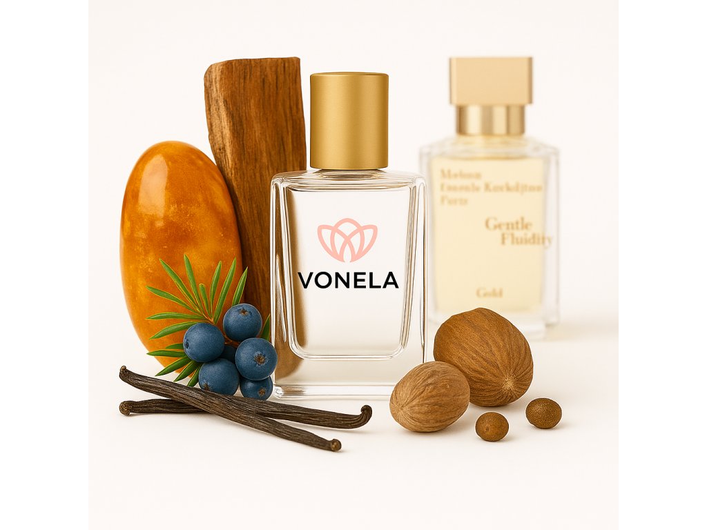 Inspirován: MFK Gentle Fluidity Gold. Naše parfémy se vyrábějí ze stejných ingrediencí a stejným postupem jako originální parfémy známých značek.