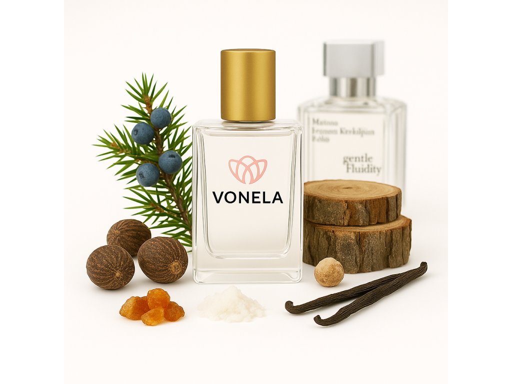 Inspirován: MFK Gentle Fluidity Silver. Naše parfémy se vyrábějí ze stejných ingrediencí a stejným postupem jako originální parfémy známých značek.