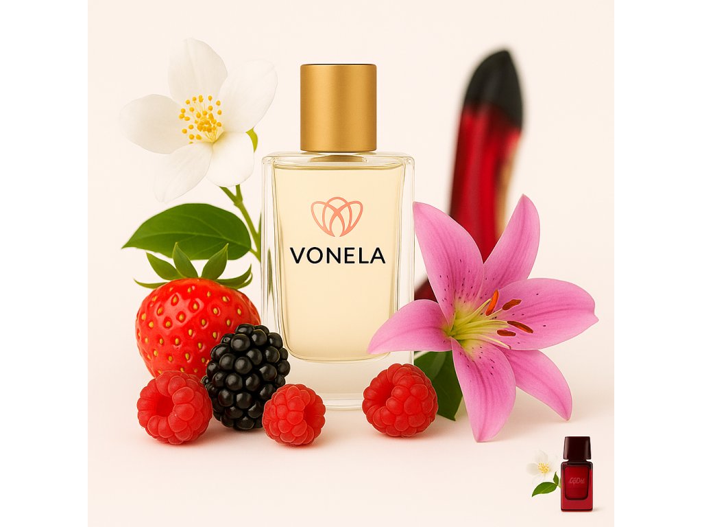 Vůně otevírá svá okouzlující tajemství šťavnatými tóny lesních plodů a smyslného egyptského jasmínu, které přinášejí pocit svěžesti a ženskosti. Ve středních tónech se prolínají hřejivé akordy tonka bobů a bohaté tuberózy, které dodávají vůni hloubku a intenzitu. Základní tón tvoří vetiver, který vůni uzemňuje a zanechává dlouhotrvající, sofistikovaný dojem.
